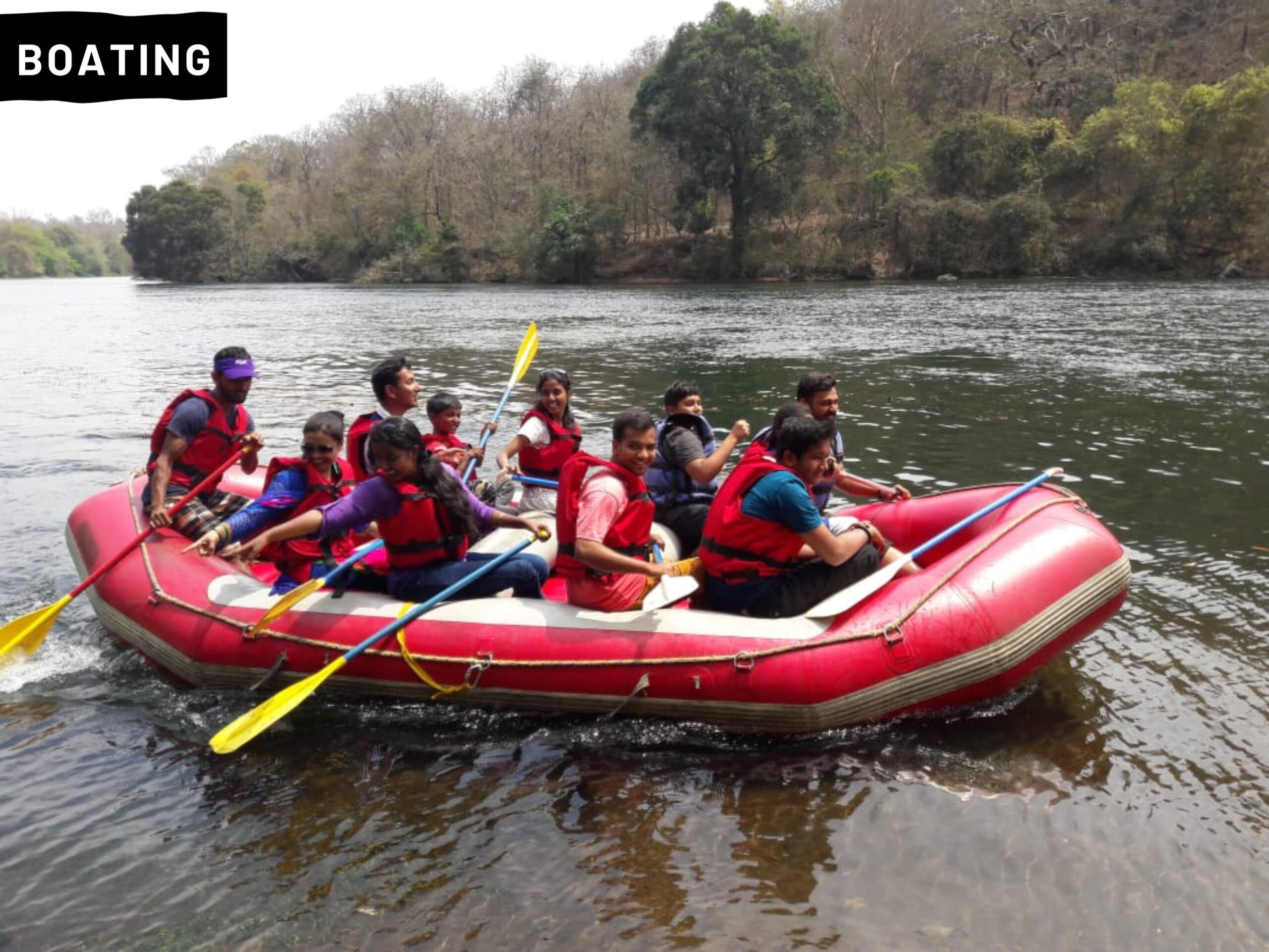 - Short rafting: This is the most common type of rafting in Dandeli, suitable for beginners and families. It covers a distance of about 1.5 km and takes around 45mins to complete. Short rafting is available throughout the year, except during the monsoon season.